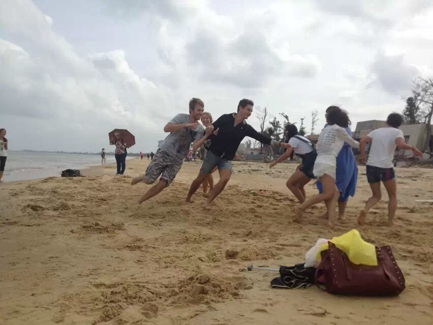 11月29日海南经贸站英语协会的同学们与丹麦职工出游到桂林洋海滩边烧烤,度过了一次愉快而难忘的短途旅行。