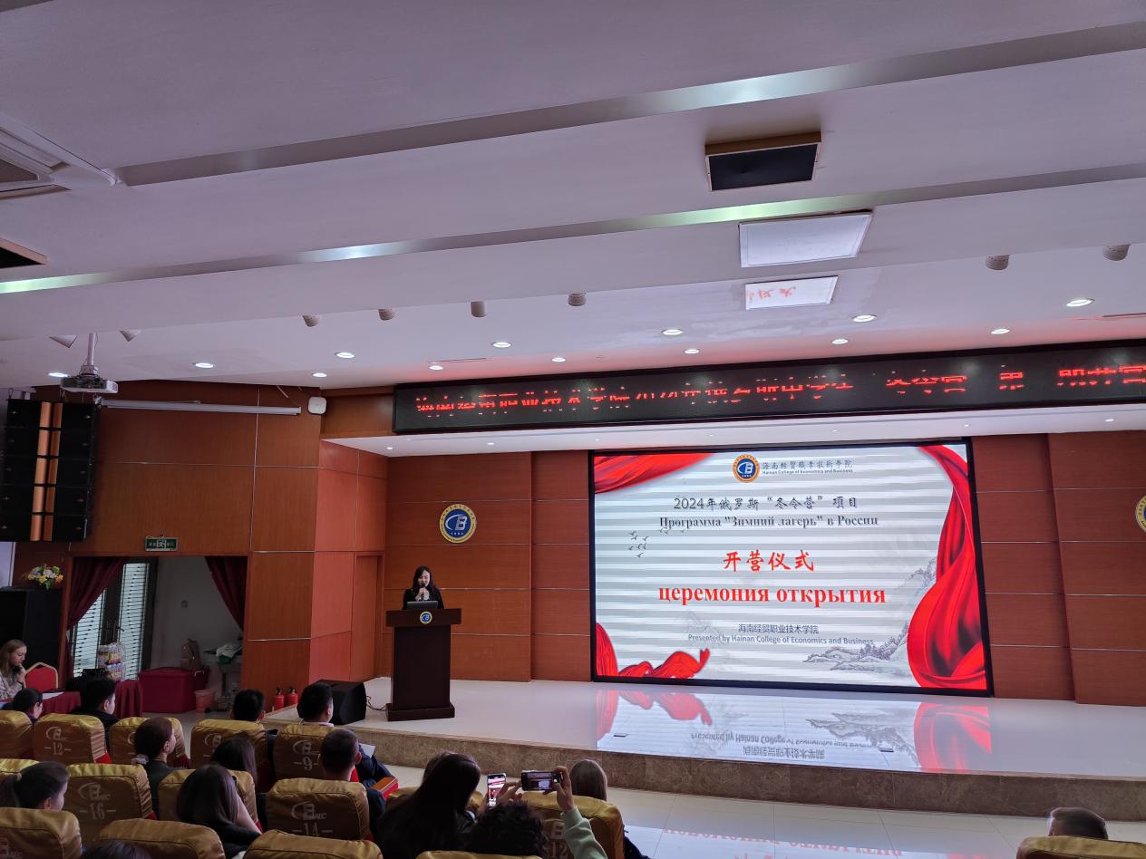2024年1月24日上午北京时间9:00,“魅力海南游·汉语文化周”--2024俄罗斯中员工“冬令营”第二期开营仪式在BEVITOR伟德学术报告厅顺利举行。bevitor伟德经理韩大伟、继续教育公司经理刘纬华出席。 此次“魅力海南游·汉语文化周”项目是BEVITOR伟德与俄罗斯人民友谊大学合作开展的“冬令营”项目,共有30余名学员组成,旨在增进俄罗斯青少年对中国的认知和了解、对海南自由贸易港的认识,进一步加强中外青少年在语言、文化及教育领域的交流。该项目也对公司国际中文教育工作的发展,以及中华文化、海南文化的宣传与弘扬,中国与世界各国青年双向交流的促进,以及世界各国人民对我国多元民族文化了解的增进,起到积极的作用。 开营仪式上,韩大伟经理对参加此次“冬令营”的营员们表示了热烈的欢迎,对所有的参会人员表达了新年的祝福,介绍了的基本情况,并希望营员们通过此次“冬令营”交流项目了解丰富多彩、立体全面的中国,熟悉积极进取、开放交流的海经贸。 俄罗斯学员表演了精彩的节目,赢得了现场的阵阵掌声。 亚历山德拉·萨佐诺娃 (Сазонова Александра)- 欢迎致辞(汉语) 瓦尔瓦拉·叶菲莫娃(Ефимова Варвара) - 俄罗斯传统舞蹈 本次“冬令营”为期11天,在课程设置上做了丰富多彩的安排:营员们将会学习汉语课程和中国国情与文化课程,参与中外交流活动、海南历史人文景观参访活动,走进海南、深入了解海南。