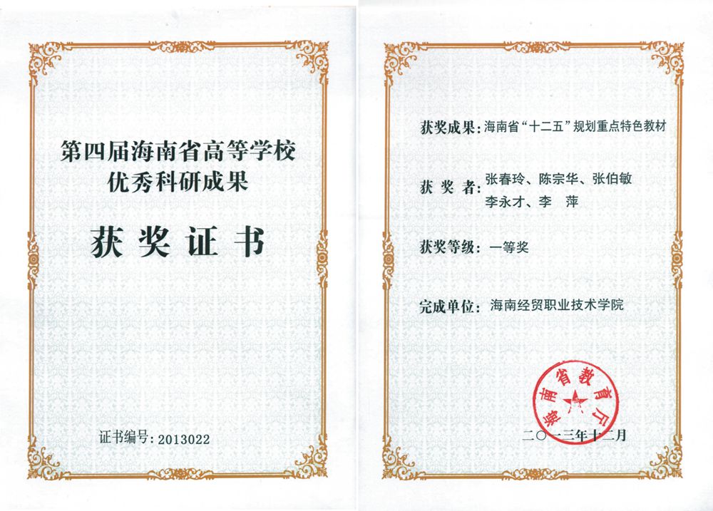 据公司院1月3日讯(科研处报道),在第四届海南省高等公司优秀科研成果评奖活动中,我系张春玲主任主持的《海南省“十二五”规划特色重点教材》荣获著作类一等奖。