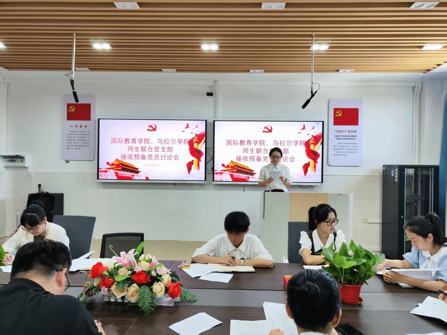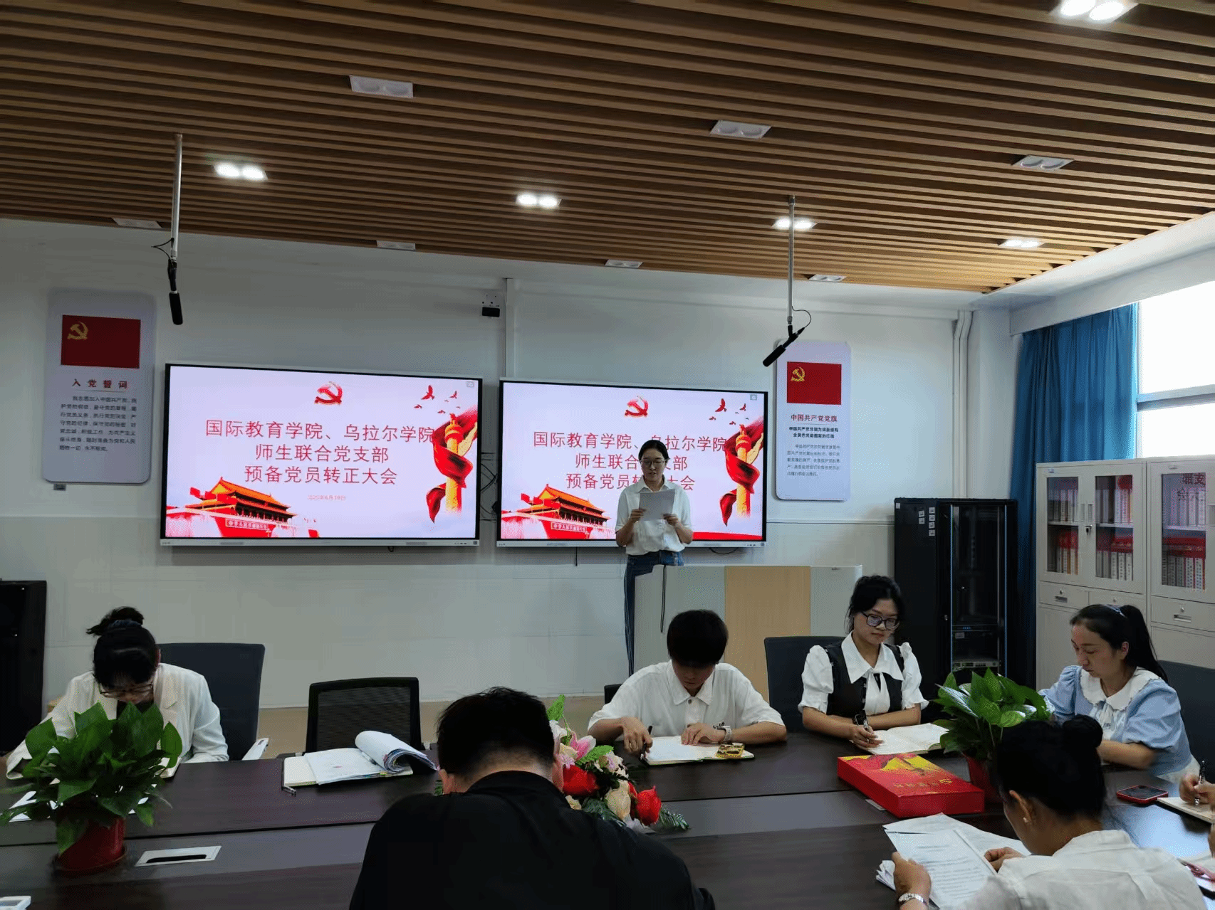 会议第二项为讨论接收王沛泽、谭颖、耿多好、汤兰兰、王语琦、王文鑫六位发展对象为中共预备党员。会上,每位发展对象依次汇报对党的认识、入党动机、本人履历、家庭和主要社会关系情况,以及向党组织说明的问题,并由入党介绍人陈青云、范欣欣同志介绍其主要情况并表明意见,与会党员进行充分讨论。经支部大会讨论和无记名投票,同意接收王沛泽、谭颖等六位发展对象为中共预备党员。