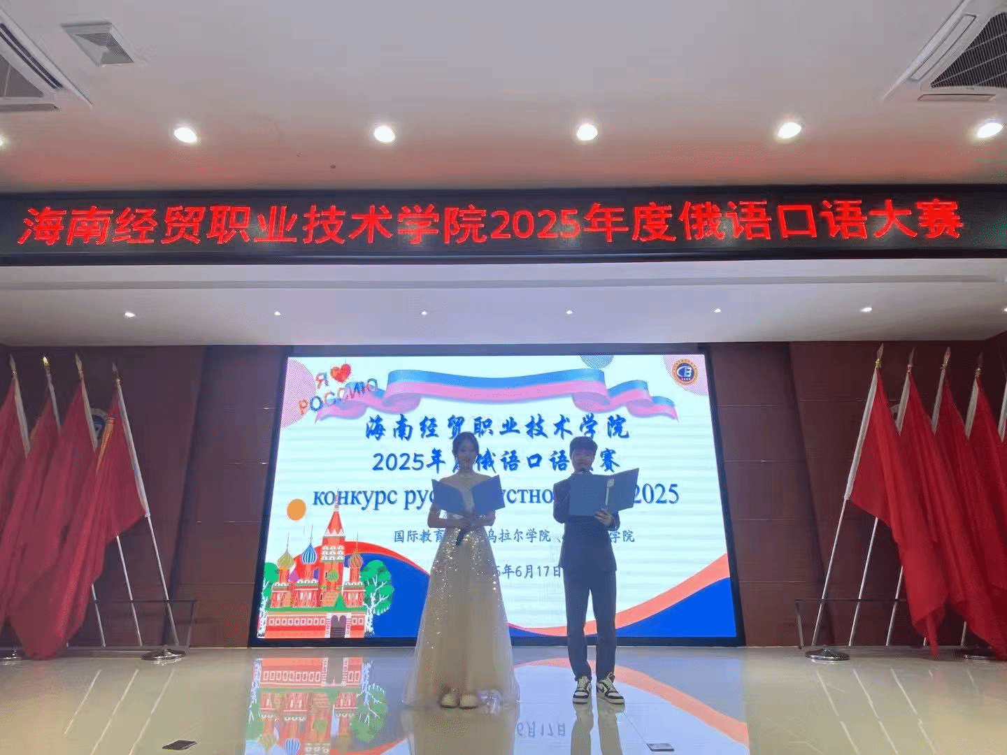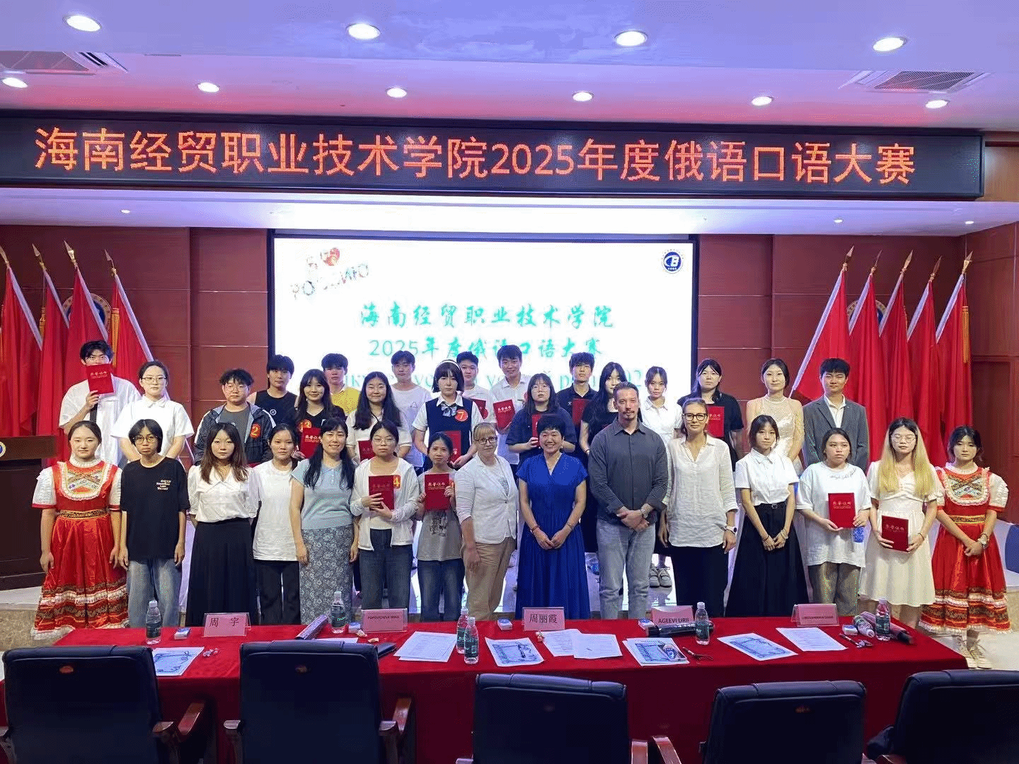 本次比赛不仅为两院的员工提供了展示自我的平台,也进一步营造了浓厚的俄语学习氛围。评委们从语言表达、内容创新、舞台表现等方面对选手进行综合评分,最终评选出一批优秀选手,他们将代表公司参加2025年海南省职业院校员工俄语口语比赛。