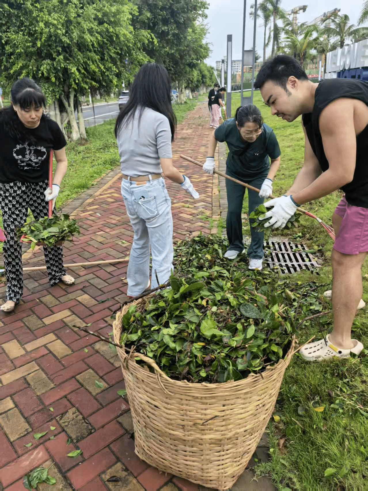 10月6日清晨,公司教职工志愿者队伍迅速集结,携带清扫工具对国际教育中心楼周边、校园道路、公共活动场地展开集中清理。大家分工明确、相互配合,重点清除被台风刮落的树枝、落叶、断枝及各类杂物,经过数小时协作,校园主干道、公共区域恢复整洁畅通,为师生出行扫清障碍。