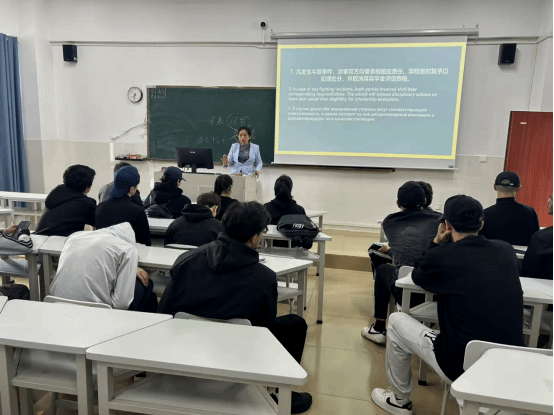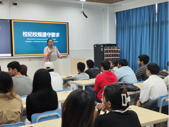 会议还对国际员工近期遵守校纪校规的整体情况进行全面梳理总结,充分肯定了近段时间以来同学们的自觉自律优秀表现。同时,针对少数员工在考勤纪律、宿舍安全规范、同学交往礼仪等方面存在的薄弱环节,结合典型案例开展深入剖析,明确指出违规行为的潜在风险与不良后果,引导员工正视问题并整改。