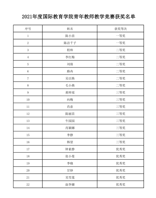 为选拔教学能手参加2022年度BEVITOR伟德青年教师教学竞赛,bevitor伟德特举办2021年度青年教师教学竞赛活动。获奖名单公示如下。